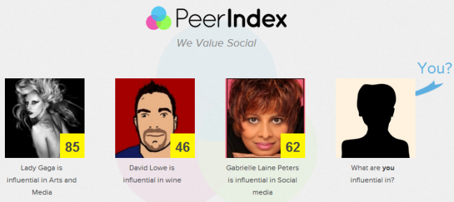 - Peerindex es una herramienta para medir nuestra influencia en las redes sociales como Twitter, Facebook y LinkedIn, además de blogs y Quora. El número de seguidores puede ser una vía para medir la influencia en la red, pero no siempre es la más fiable. Peerindex utiliza su propia puntuación, basándose en tres factores: la autoridad, la actividad y la audiencia. A partir de un complejo algoritmo, establece una puntuación que se encuentra entre 1 y 100 para que el usuario descubra la influencia que tiene en la red. Además, también permite conocer más a fondo nuestra comunidad, ya que permite saber quién deja de seguirnos, quién nos ha empezado a seguir o datos estadísticos sobre nuestra comunidad, entre otras funcionalidades. Conocer nuestra reputación a través de Peerindex es tan fácil como entrar a la web y loguearnos a través de Twitter o Facebook.