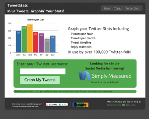 - Tweetstats Con tan solo introducir un usuario de Twitter podremos conocer muchos datos estadísticos de una cuenta. Esta herramienta permite conocer, por ejemplo, cuántos tweets ha publicado durante un mes, qué día tiene más actividad esa cuenta, a qué hora, y el número de menciones o retweets. Tweetstats es totalmente gratuita y se basa fundamentalmente en Twitter. Otro punto a destacar es el formato en que te presenta los datos. Después del análisis, nos ofrece un gráfico de barras, muy visual, para cada punto.