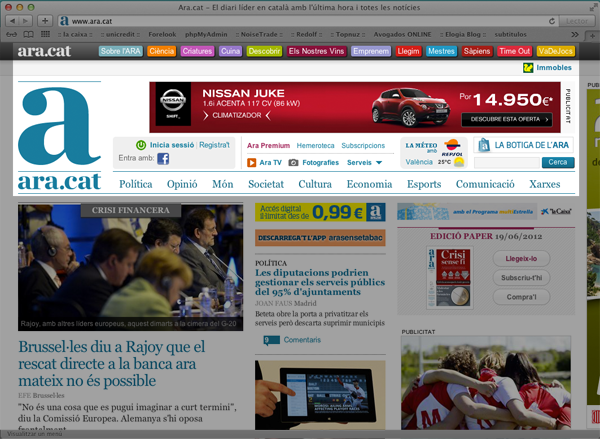 Hemos tenido la suerte de trabajar para uno de los diarios más importantes de Catalunya en estos momentos, se trata del Diari Ara (ara.cat), el cual evoluciona muy rápido y gana siempre más lectores. Las claves de su éxito son muchas y no seré yo quien revele sus secretos, pero si puedo dar fe del interés y los recursos que dedican al web.