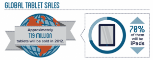 - La estimación de que se venderán un total de 119 millones de tablets a nivel mundial durante 2012, ¡el 70% de los cuales serán iPads! Parece clara la influencia de Apple en el auge de las tablets.
