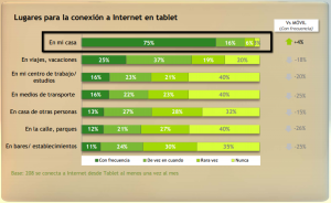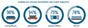 - La evidencia numérica de que el uso de los tablets está estrictamente vinculado con la comodidad de tu hogar. Un 96% de los compradores usan sus tablets desde el sofá, y un 94% lo usa también desde su cama.