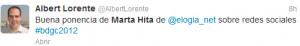 Su ponencia sobre los medios sociales, no como plataformas para cubrir las nuevas funcionalidades que demanda el marketing relacional, sino como impulso para otras áreas de negocio dentro de una empresa como captación de recursos humanos, relaciones públicas, innovación, gestión de proyectos, etc, ha sido seguida por muchos usuarios que no han dudado en dejar sus comentarios al respecto: