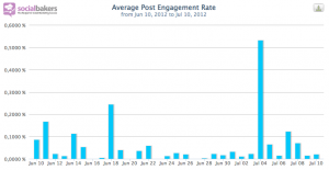 - Ratios de Engagement. Es cierto que a través de los datos que nos proporcionan los insights de Facebook podemos calcular este dato fácilmente. Pero la ventaja del uso de herramientas más avanzadas es que podemos ver una evolución diaria de estas ratios, también por horas o por días de la semana. De esta forma, y con un análisis prolongado en el tiempo, podremos identificar qué día, a qué hora y qué tipo de contenidos (links, fotos, vídeos, etc) están generando una mayor participación, y de esta forma obtener más interacciones de los usuarios.