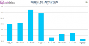 - Tiempos de Respuesta. Supongamos que mi objetivo en Facebook es usar este canal como un SAC 2.0. A través de esta estadística podremos averiguar cuántas veces respondemos a las dudas de usuarios y cuál es el tiempo transcurrido entre los comentarios y nuestras respuestas. Esto nos llevará a plantearnos KPIs para esta plataforma que de otra manera habrían sido impensables.