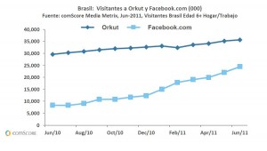 En Brasil, el 90,8% de los usuarios de internet acceden a alguna red social, lo que representa una audiencia de 43,9 millones de personas. Orkut sigue siendo la red de relaciones sociales más visitada y, en contra a lo que que muchos analistas aseguraron en su día, sigue en ascenso. Según los datos de junio de 2011, el sitio web ha alcanzado una marca de 35,7 millones de visitantes, lo que representa un aumento del 20% en relación al mismo periodo del año anterior. Mientras, Facebook está conquistando cada vez más a los brasileños y ya ha alcanzado 24,5 millones de visitantes, un crecimiento brutal del 192% si comparado con el año 2010.