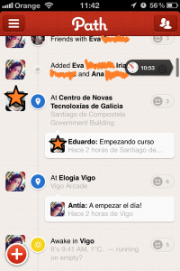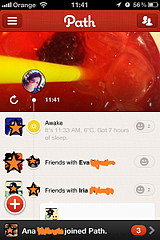 Pero volvamos a lo que os quiero contar en este post: Path (camino), no es una red novata. Esta aplicación, que se presenta tan solo en formato mobile, se lanzó hace más de un año, pero es ahora cuando empieza a convertirse en una de las redes de moda, precisamente por las opciones de privacidad que nos ofrece, y es que hasta hace poco, tan solo te permitía añadir 50 contactos. 50! pero si yo en Facebook tengo ocho veces eso! En la actualidad han abierto un poco más la mano y nos permiten compartir nuestros contenidos con 150 personas. Más que una red social, Path es un diario.