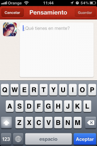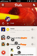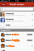 Vamos, que tienes que seleccionar muy bien con quién quieres compartir información, y aquí es donde me ha ganado. No existe la posibilidad de que nadie que no sea contacto tuyo vea tu actividad. Nada. Cerrado. Y además, nos evita "problemas sociales", me explico: a todos nos pasa que en ocasiones tenemos que añadir a nuestras redes sociales a gente "por compromiso"; parientes, novi@s de amigos, compañeros de trabajo... y no nos interesa compartir nuestra vida online con ellos, por lo que hasta ahora teníamos que crear grupos cerrados, listas de amigos, reconfigurar nuestras opciones de privacidad... Con Path es mucho más sencillo: seleccionas a tus amigos más cercanos y compartes con ellos la información que quieras. A la hora de añadir amigos (que no "contactos"), esta red trabaja como Facebook, es decir: los dos tenéis que dar vuestro consentimiento para poder ver cada uno el Path del otro.