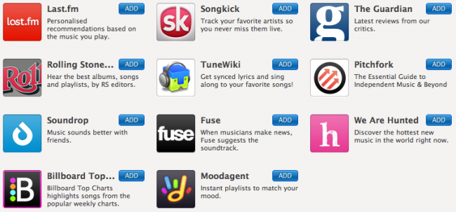 Son 11 ya las aplicaciones disponibles gratuitamente en el App Finder de Spotify que cualquier usuario puede integrar en su cuenta, sin importar si se cuenta con la versión Premium o Free del servicio, al contrario que el uso de las aplicaciones móviles de Spotify. Para instalarlas, basta con acceder al App Finder, situado en la barra de navegación horizontal izquierda. Entre las aplicaciones disponibles, destacamos las colaboraciones con las publicaciones Rolling Stone o The Guardian para mostrar críticas musicales, la aplicación de TuneWiki para convertir Spotify en un verdadero karaoke sin necesidad de salir de la aplicación o la creada por el servicio de recomendaciones musicales y scrobbling Last.fm para ayudaros a descubrir artistas relacionados.