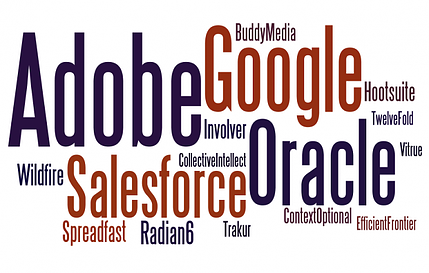 Salesforce, el rey de los social CRM, cuenta actualmente con unso 82,400 clientes repartidos por todo el mundo (cotiza en la bolsa de Nueva York con el símbolo "CRM"). Desde 2006 ha comprado más de 20 empresas consolidadas y startups y se ha posicionado como unde los competidores más pontentes del mundo en marketing digital. Además, ocupa el número 27 en el ranking de los 100 mejores lugares de trabajo elaborado por la revista Fortune. Tampoco Saleforce quiere perder la oportunidad y se ha agenciado, según mi opinión, dos de las plataformas más potentes del mercado que, combinadas, representan una solución social 360º.