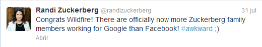 Es curioso, pero la hermana de Mark Zuckerberg, Arielle Zuckerberg, es project manager junior en Wildfire. Y entre el resto de trabajadores se encuentra también Harry Smith, marido de Donna, otra de las hermanas de Mark. Randi Zuckerberg (su hermana mayor, ex-directora de marketing en Facebook y actualmente emprendedora) , no ha podido contenerse y ha publicado el siguiente tweet: