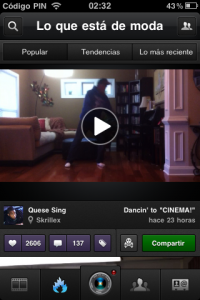 La interfaz es muy sencilla de utilizar y sigue los mismos principios de diseño y usabilidad de Instagram: barra de navegación inferior con acceso rápido a la utilidad de grabación y scroll infinito para la navegación por las actualizaciones de los amigos o usuarios o la cuenta propia, con la salvedad de que los contenidos son vídeos.